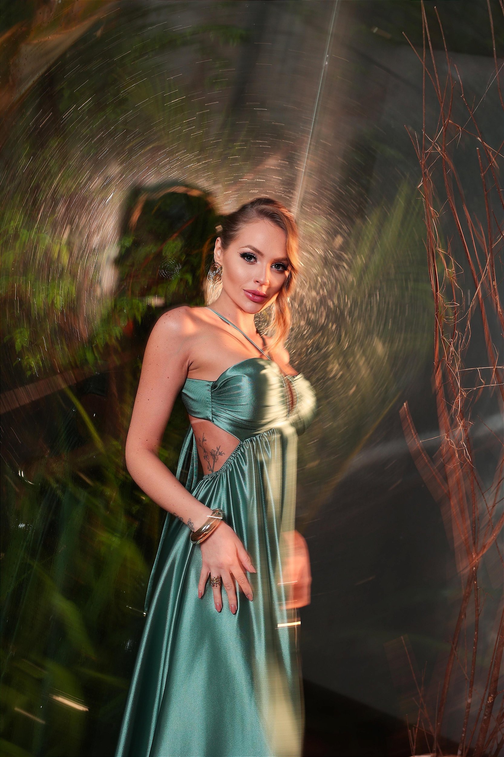 VESTIDO LONGO FRENTE ÚNICA CETIM COM AMARRAÇÃO NAS COSTAS VERDE