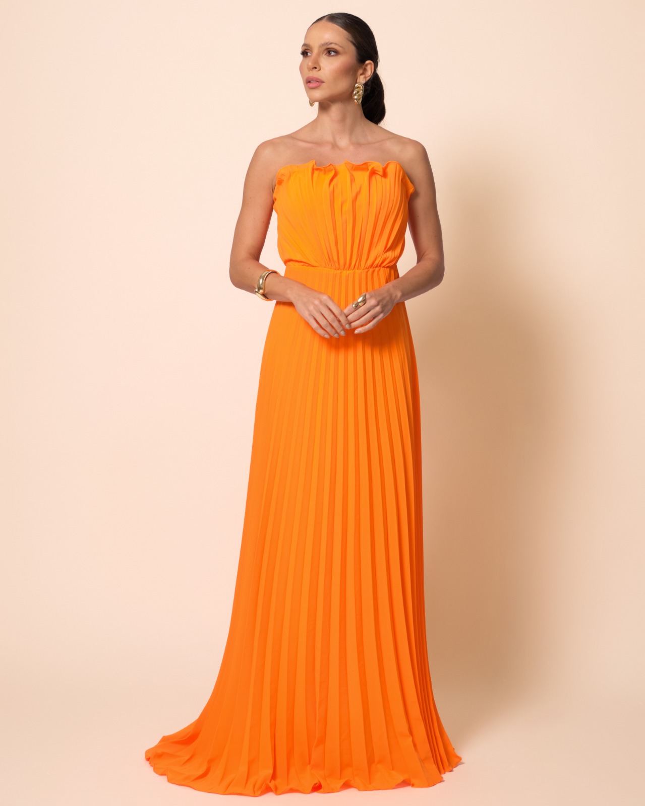 VESTIDO LONGO PLISSADO TOMARA QUE CAIA COSTAS NUA LARANJA