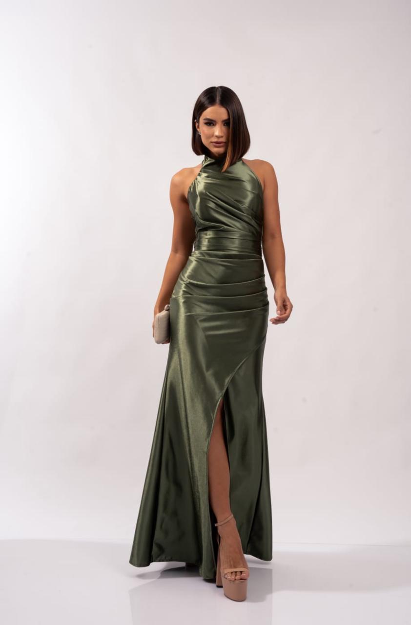 VESTIDO LONGO PRADA FRENTE ÚNICA TODO DRAPEADO VERDE ESMERALDA