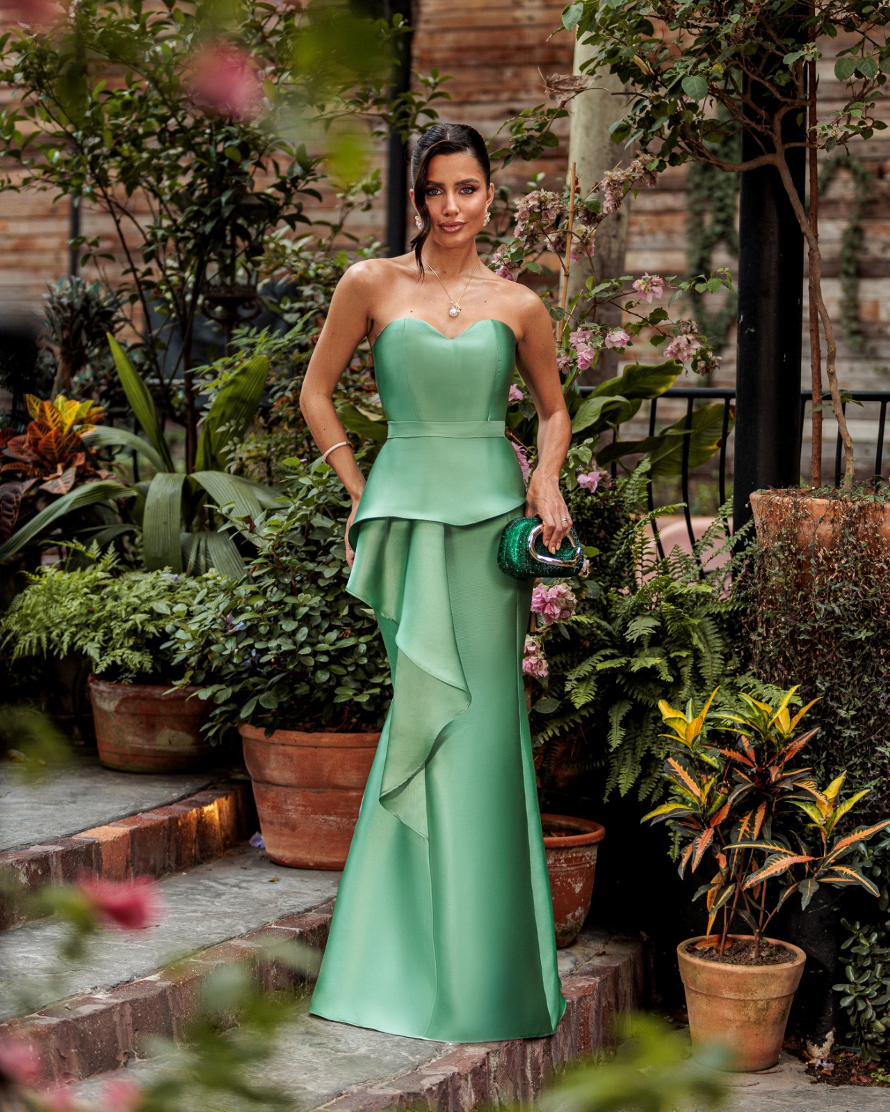 VESTIDO LONGO ZIBELINE TOMARA QUE CAIA COM PEPLUM VERDE MENTA