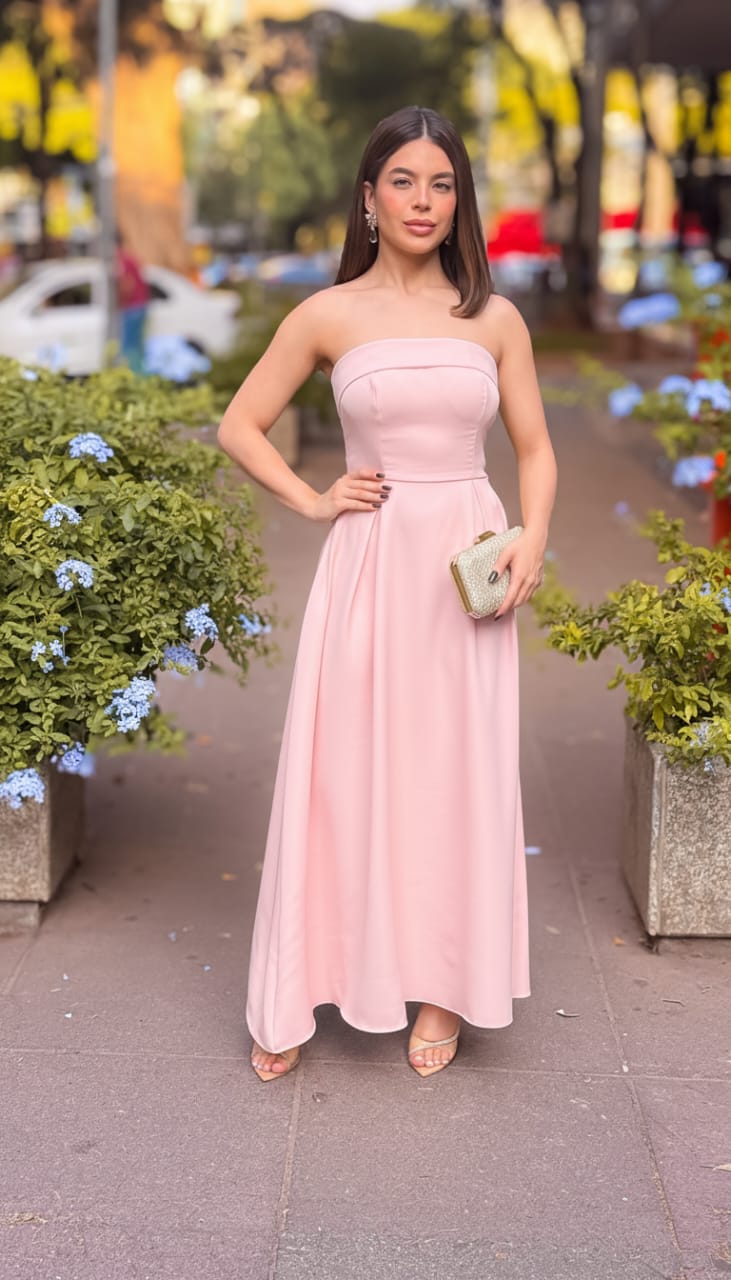 VESTIDO MIDI TOMARA QUE CAIA CINTURA MARCADA ROSA