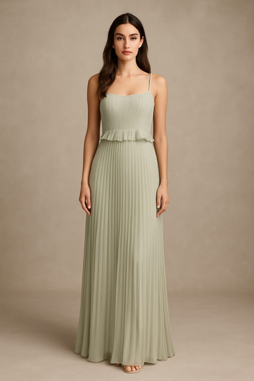 VESTIDO PLISSADO DE ALCINHA COM CAMISETA SOBREPOSTA VERDE MENTA